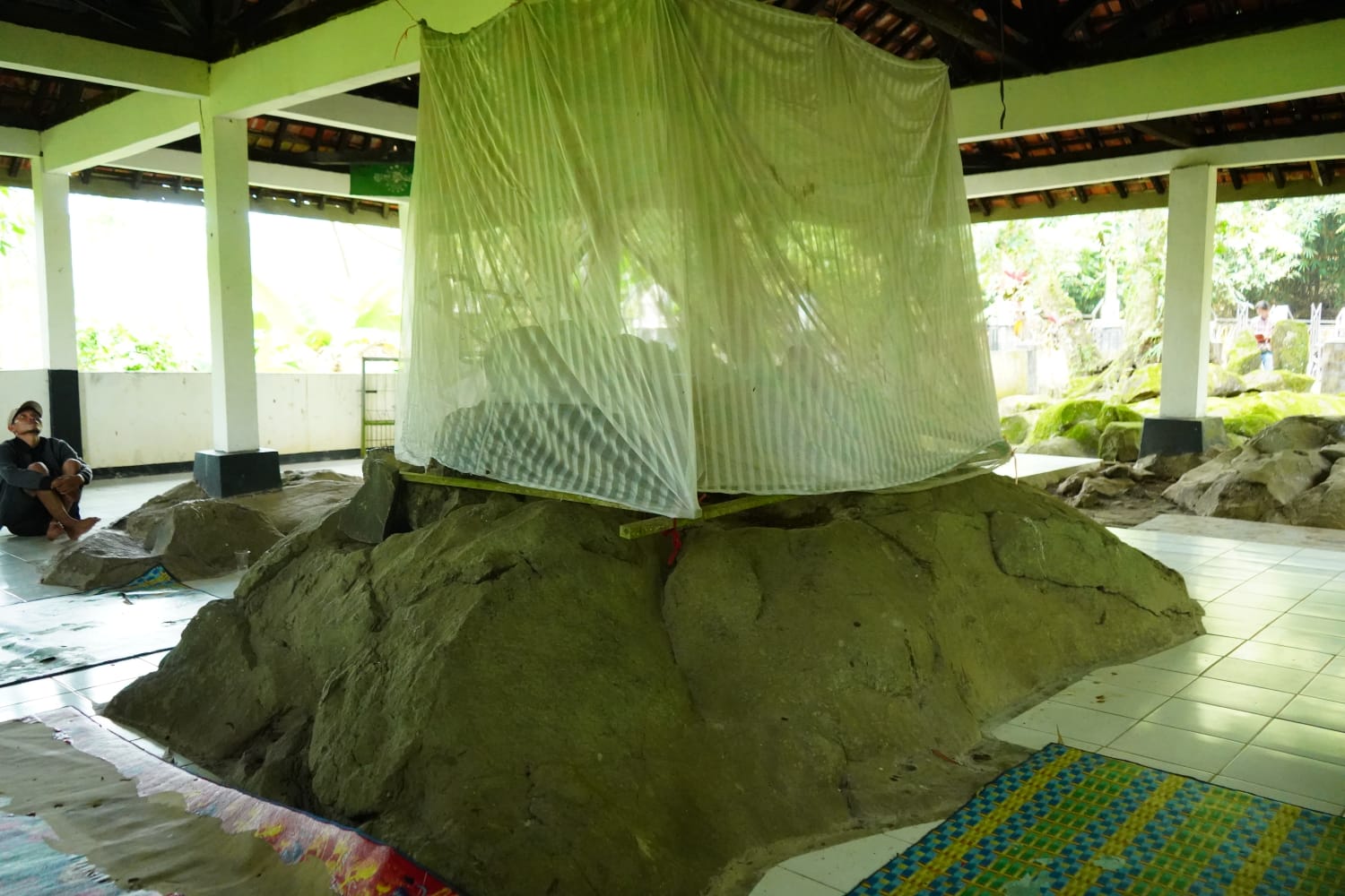 Menurut cerita yang lain lokasi ini bukan merupakan makam dari Raden Anom Wirasuta, tapi tempat Raden Anom Wirasuta pernah melakukan perenungan atau berdiam diri sehingga dikenal dengan Maqom Raden Anom Wirasuta. Sebelumnya masyarakat hanya mengetahui keberadaan tempat ini sebagai tempat biasa dengan satuan batu andesit besar yang di sekitarnya terdapat batu tegak berdiri. Di sekitar wilayah tersebut juga juga ditemukan sebuah batu yang terdapat simbol telapak kaki, oleh warga setempat disebut dengan "batu tapak". Batu ini terletak di bagian utara lokasi ini dan dekat dengan aliran sungai. Selain itu, sekitar kurang lebih 500 meter ke arah selatan terdapat sumber mata air yang menurut keterangan warga dahulunya terdapat arca dengan bentuk sederhana yang berdiri di atas batu. Saat ini arca tersebut telah diambil oleh orang yang tidak dikenal. Mata air tersebut tidak pernah surut dan biasanya saat kekeringan warga menjadikannya sebagai sumber air cadangan.